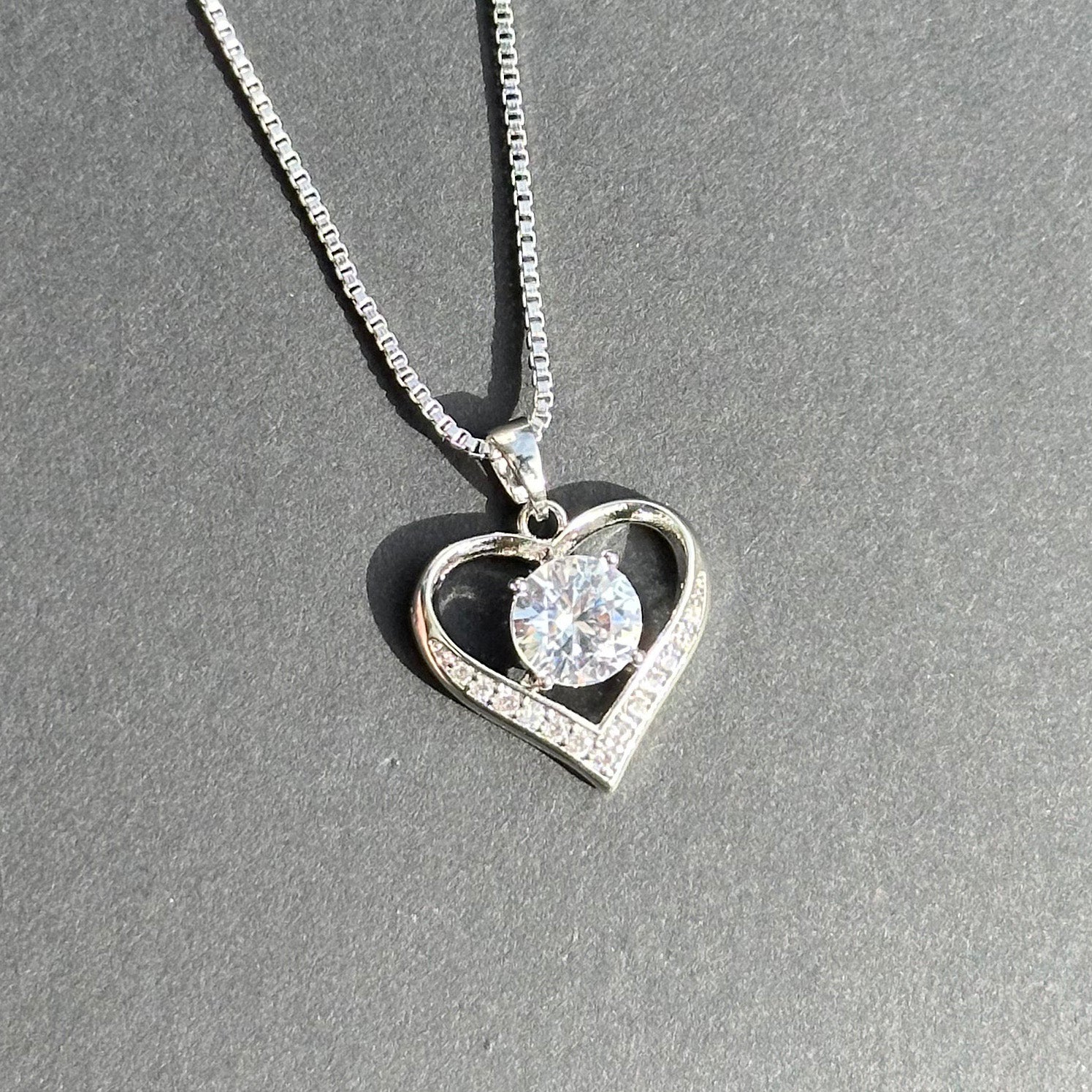 A delicate heart shaped necklace with a message card that reads: